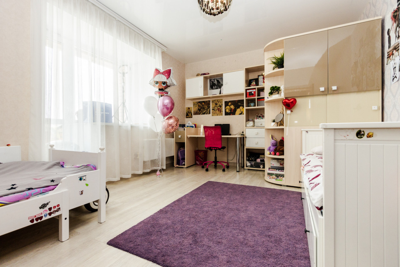 ПЛАНИРОВОЧНЫЕ РЕШЕНИЯ: В квартире уютная планировка: большая и светлая, удобная кухня 11 кв.м, большая гостиная 19 кв.м., укромная и тихая спальня 17 кв.м с выходом на лоджию, третья комната-детская 17 кв.м., в нежно розовых тонах, со своим гардеробом, с выходом на балкон.