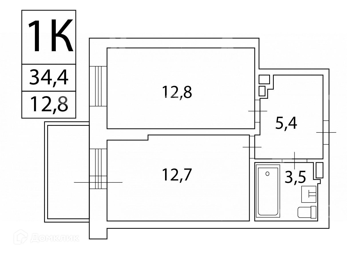 Общая площадь 34.4 м2
