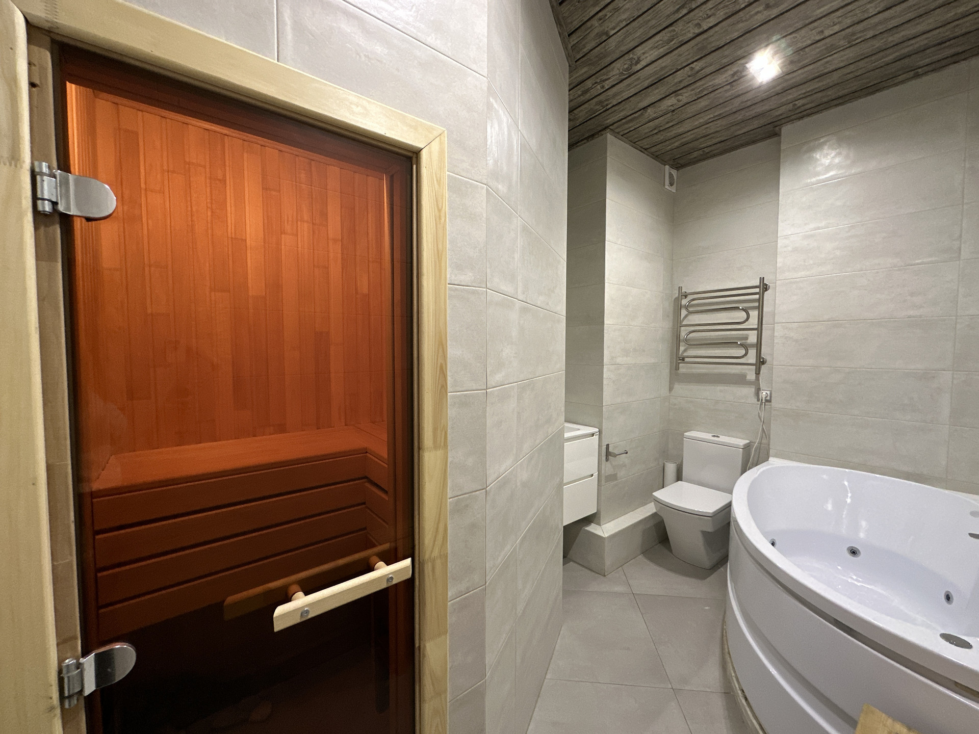 Изюминкой квартиры является ванная комната с сауной и джакузи, для настоящих ценителей комфорта, не выходя из дома.