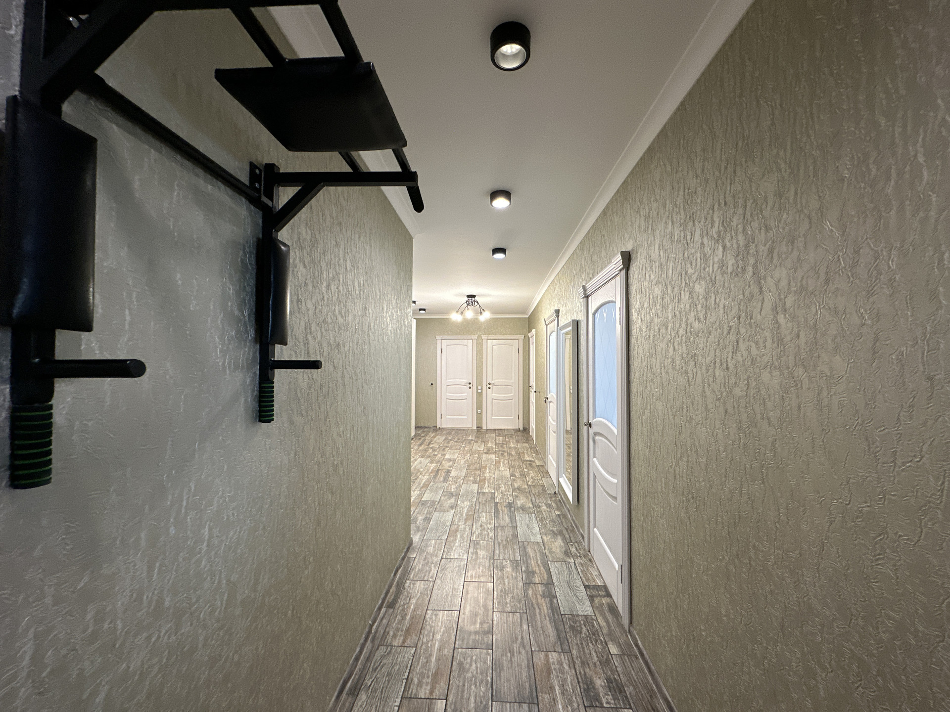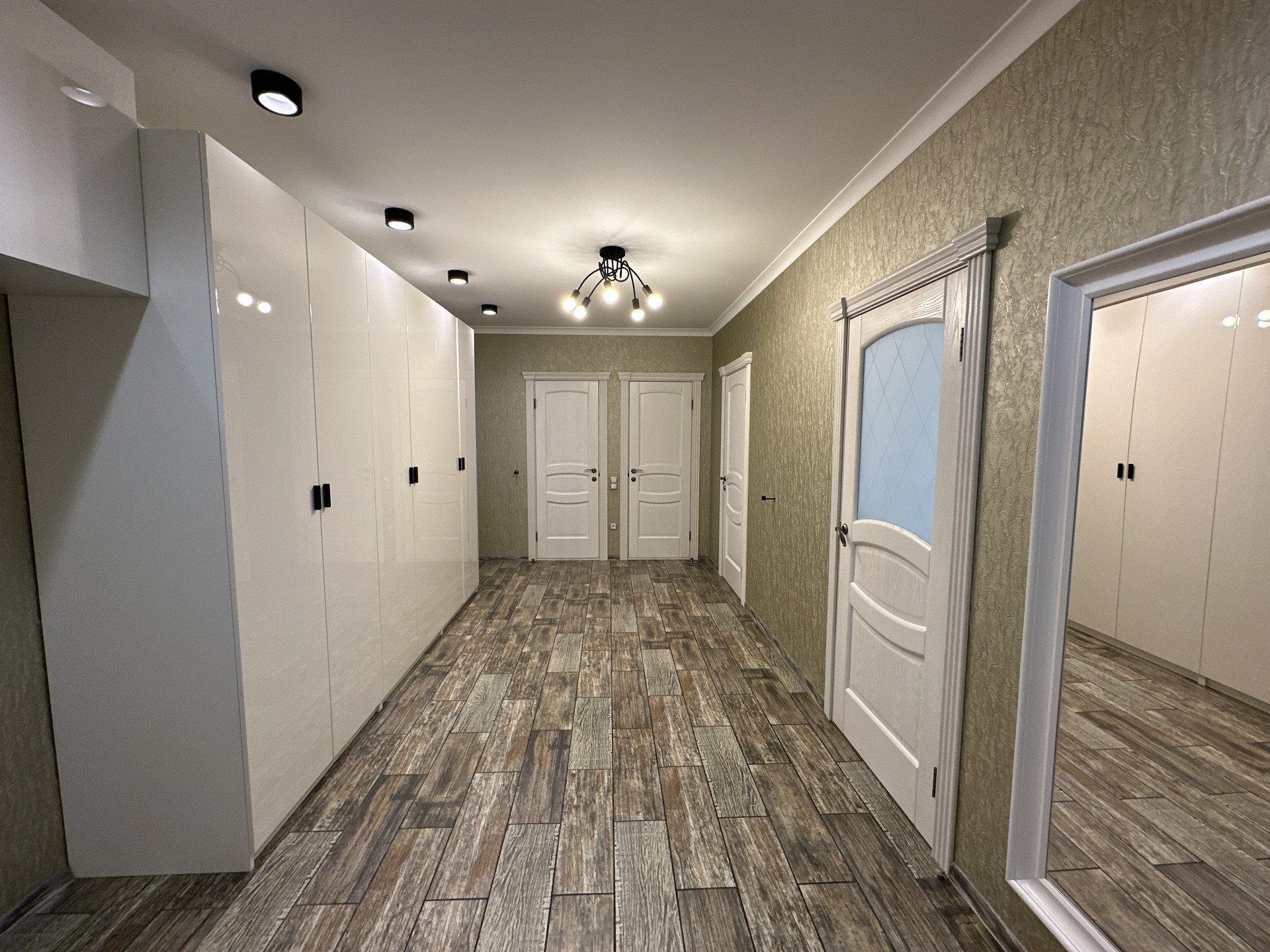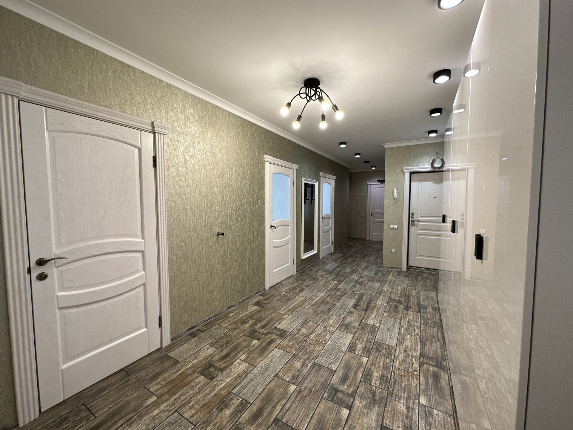 В квартире выполнен качественный ремонт из дорогостоящих материалов: испанский кафель и сантехника, осиновая сауна с джакузи, лоджия с подогревом, навесные гипсокартоновые потолки с шумоизоляцией.