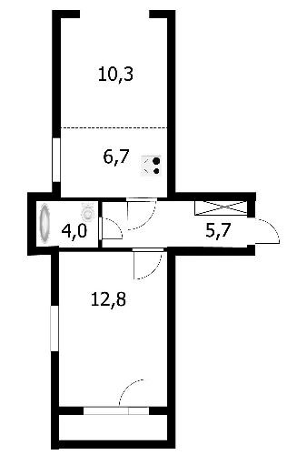 Кухня-гостиная 17 кв.м. и спальня с выходом на лоджию 13 кв.м.