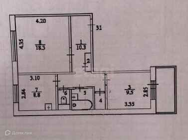 Общая площадь 52.7 м2