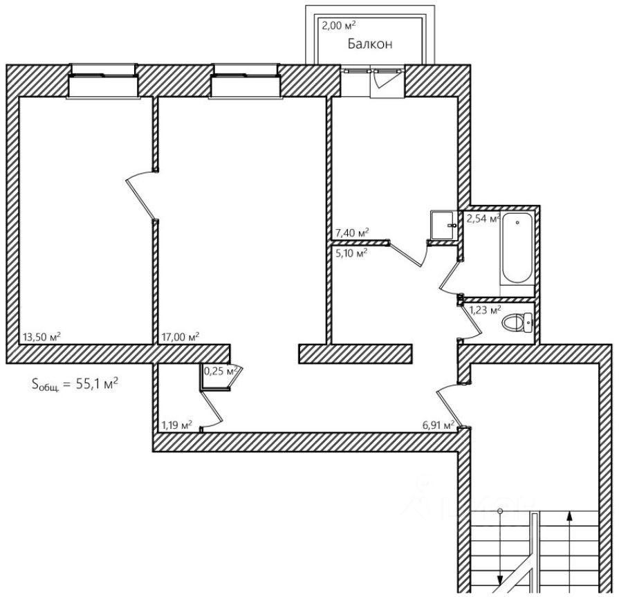 Общая площадь 55.1 м2