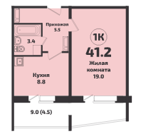 Общая площадь 41.2 м2