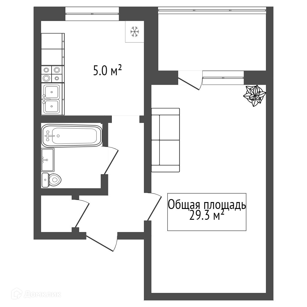 Общая площадь 29.3 м2