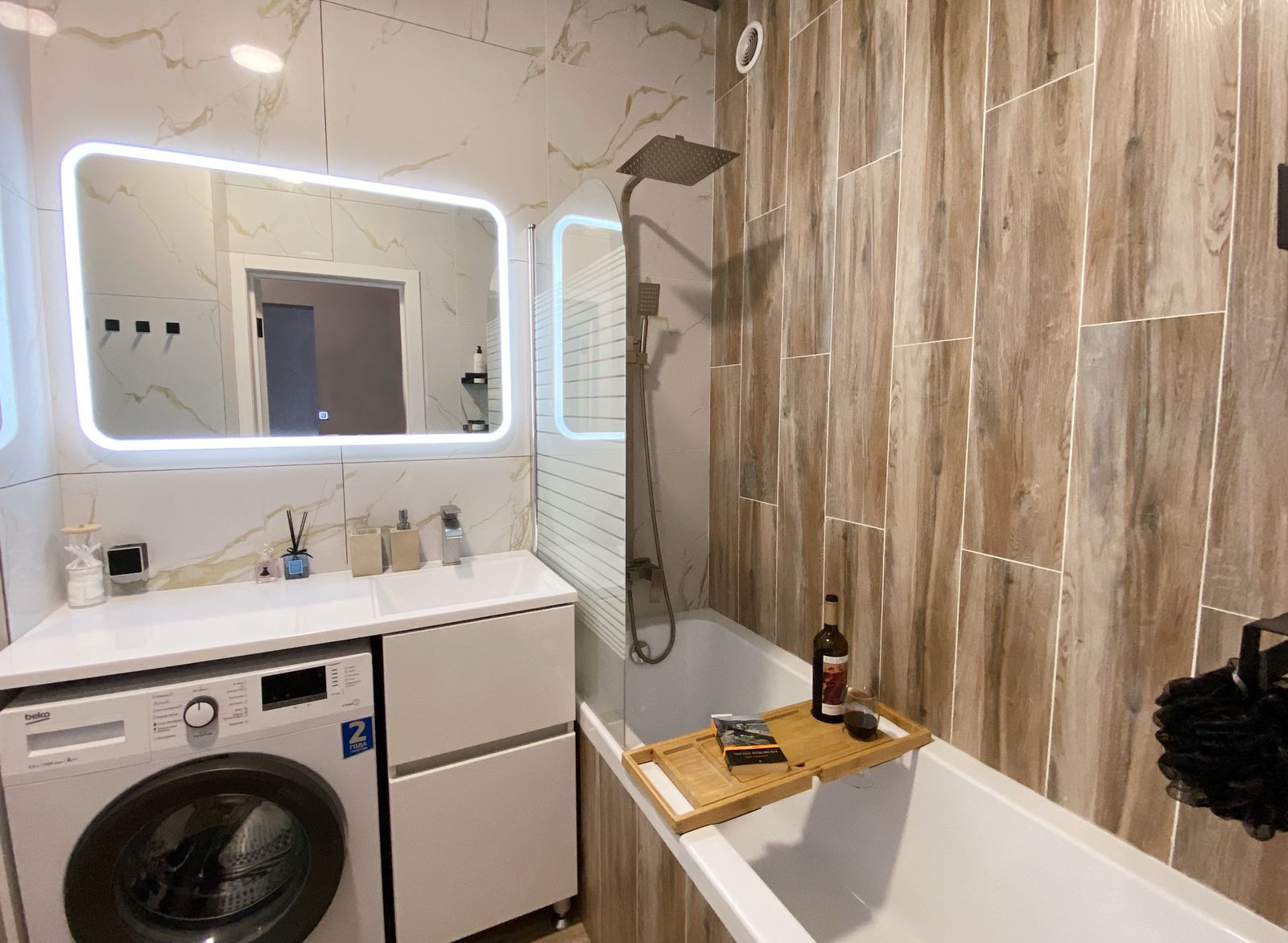 ВАЖНО: в прихожей с ванной не натянут потолок тк переносили систему пожарной безопасности и ждали керамогранит заказной, но все споты, лампы, теневой профиль и полотно для натяжного потолка закуплены) Реальным покупателям сделаю скидку на эти нюансы.