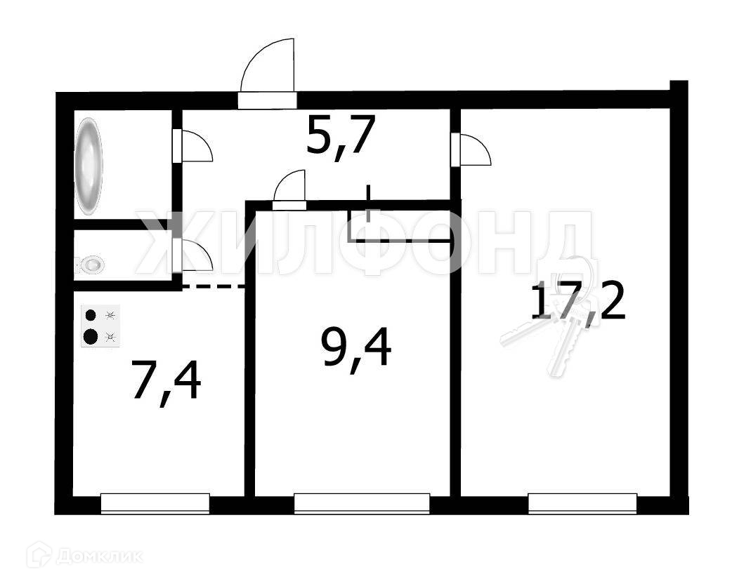 2-комнатная квартира, 44.1 м2, этаж 1 / 9, на продажу в Новосибирске, улица Грибоедова, 32