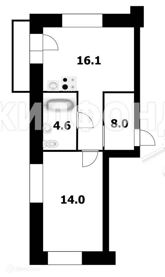 Жилая площадь 25.1 м2