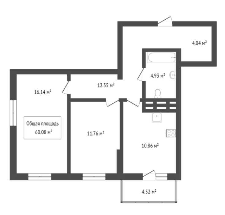 Общая площадь 60 м2