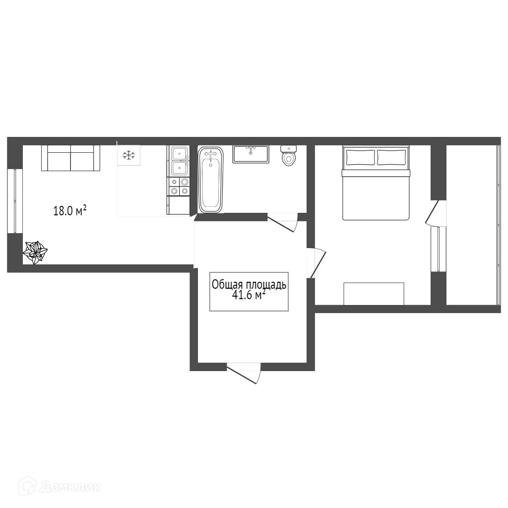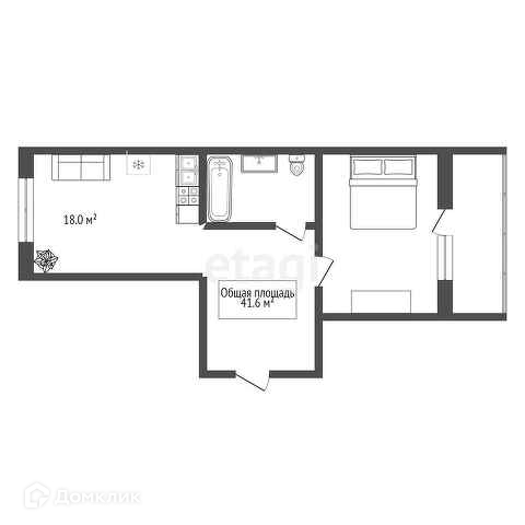 Общая площадь 41.6 м2