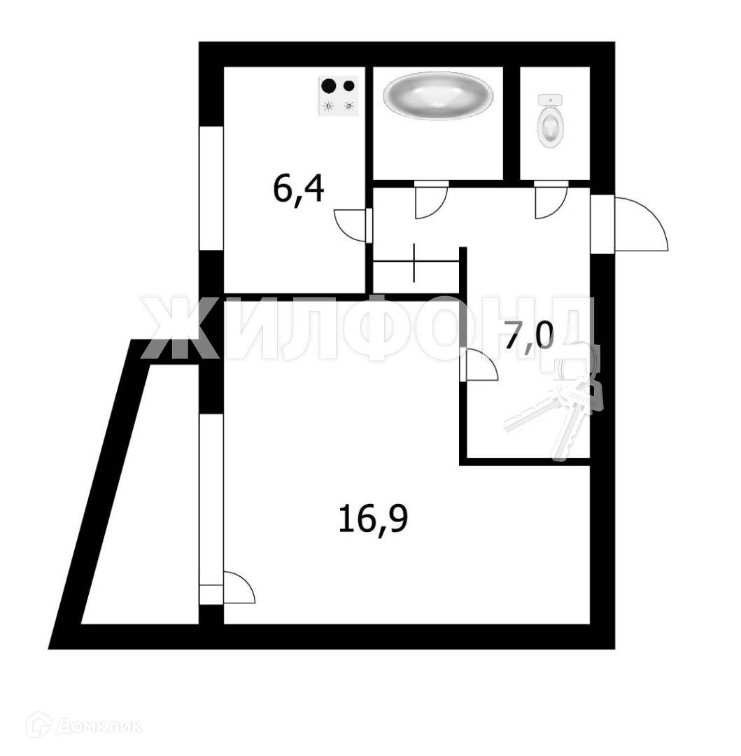 1-комнатная квартира, 34.5 м2, этаж 3 / 9, на продажу в Новосибирске, Сибирская улица, 51