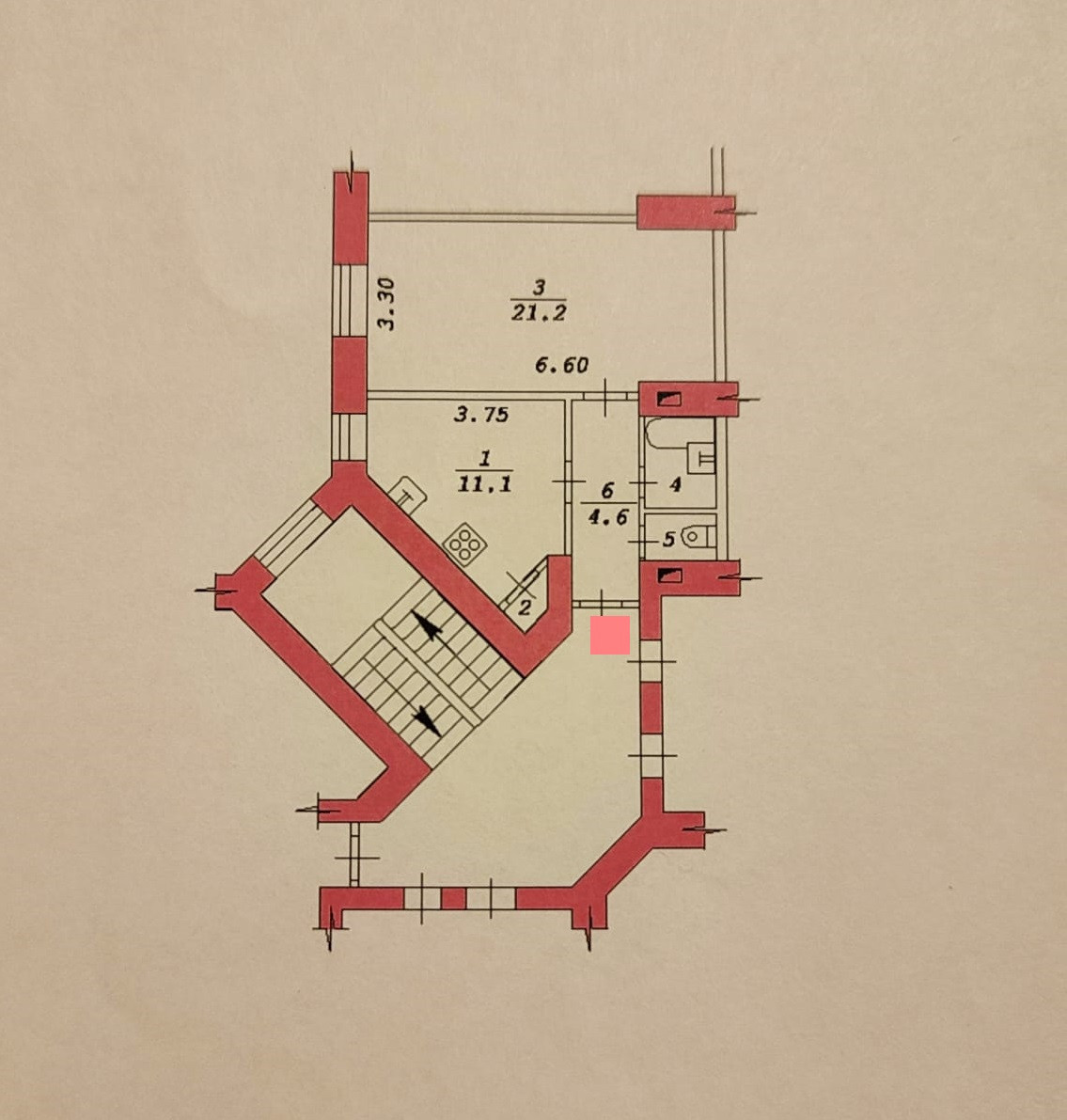 Жилая площадь 21.2 м2