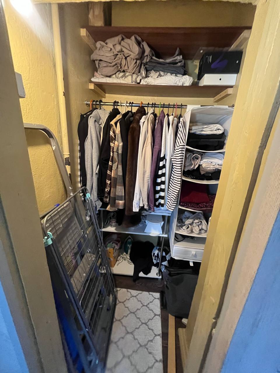 В коридоре полноценный шкаф для верхней одежды, в кладовке организованы полки и вешалки.