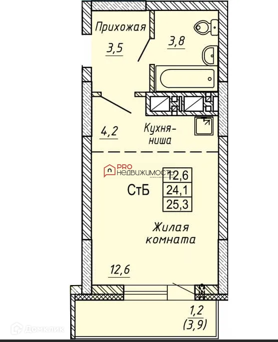 Общая площадь 25.3 м2