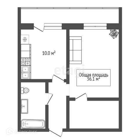 Общая площадь 36.1 м2
