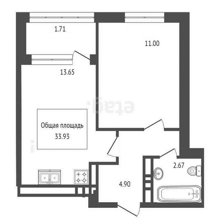 Общая площадь 34 м2