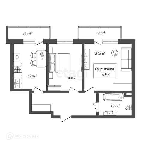 Общая площадь 54 м2