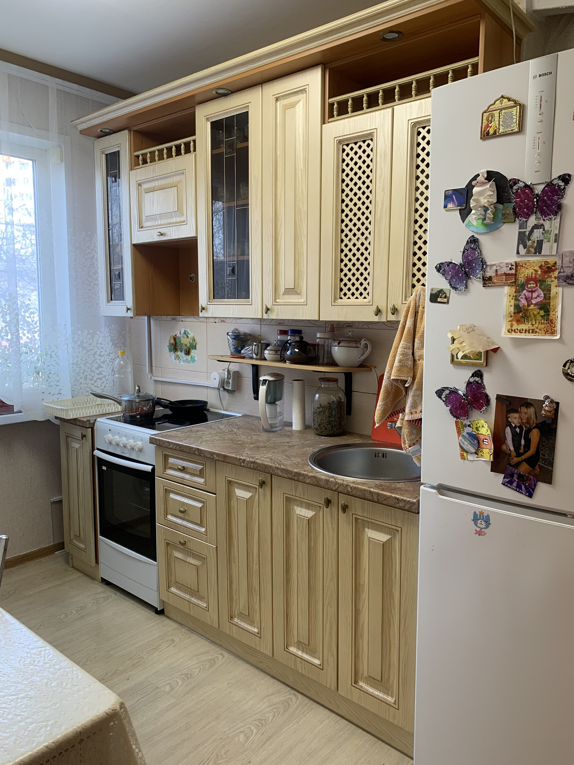 В квартире выполнен ремонт. Квартира светлая, теплая, комфортный этаж. При продаже остается мебель: кухонный гарнитур, спальный гарнитур.