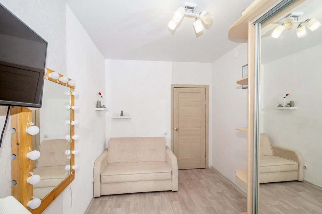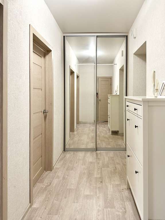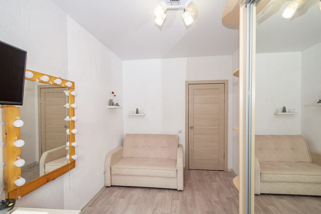 Уютная квартира, наполненная светом и воздухом - отличный вариант для семьи! В квартире выполнен свежий ремонт качественными материалами в приятной светлой гамме. Просторные комнаты частично меблированы новой мебелью. Стильный белоснежный кухонный гарнитур современного дизайна оборудован всем необходимым. В коридоре - удобный встроенный шкаф-купе с зеркальными дверями полностью решает задачи хранения вещей, визуально расширяя пространство. В комнате также остается большой шкаф-купе. Уютная лоджия с прекрасным видом. Хороший метраж и правильная форма комнат позволяют организовать пространство, отвечающее вашим потребностям: по принципу двухкомнатной квартиры-студии или изолированной.