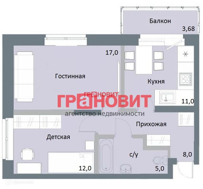 2-комнатная квартира, 52.5 м2, этаж 16 / 17, на продажу в Новосибирске, улица Серафимовича, 20