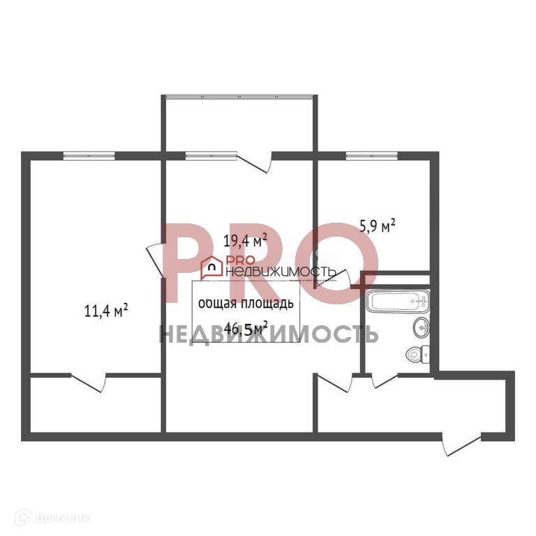 Общая площадь 46.5 м2