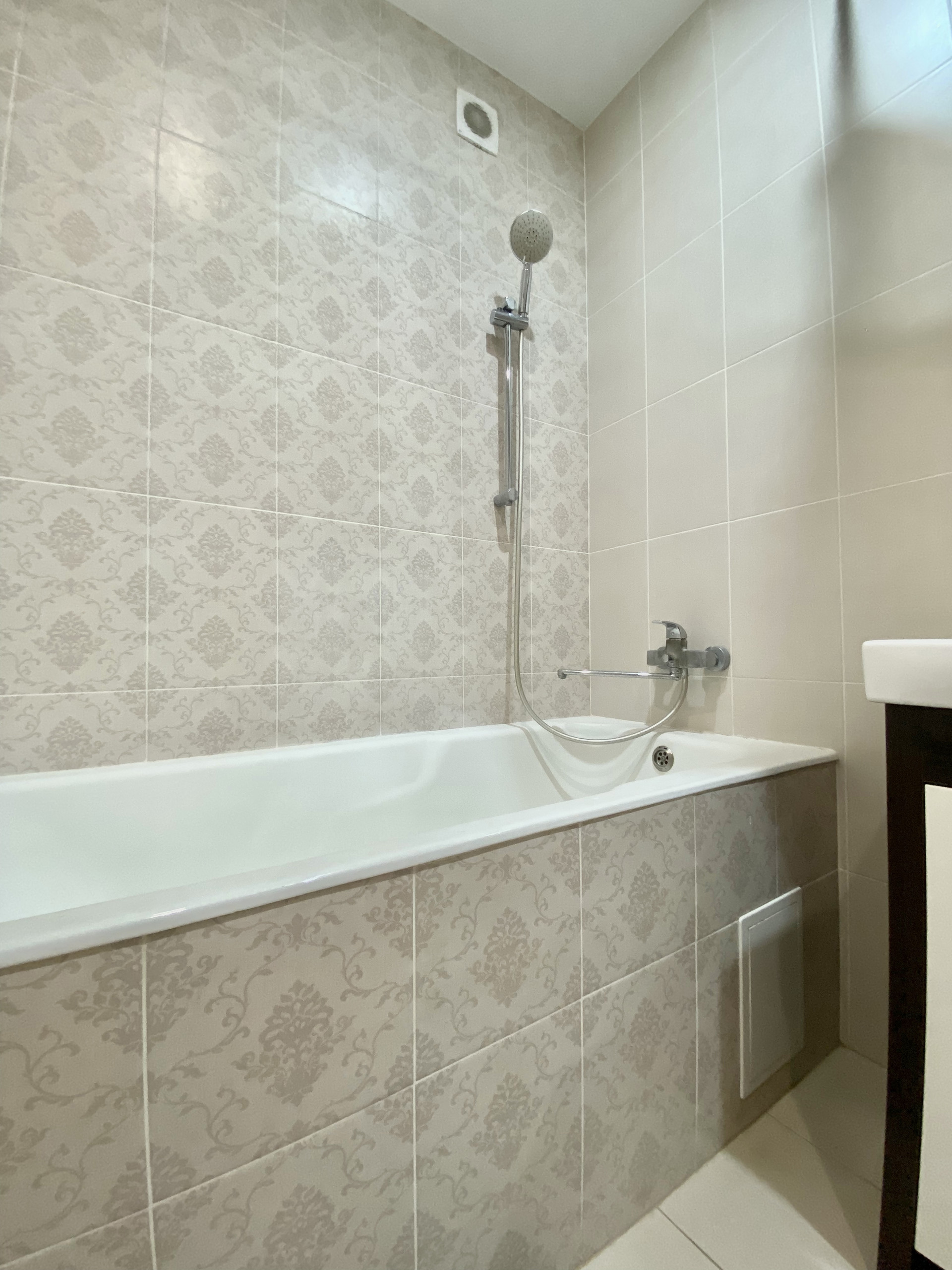 Просторный санузел с качественной сантехникой Am/Pm. Чугунная вместительная ванна, 170*80, в которой комфортно можно расслабиться.