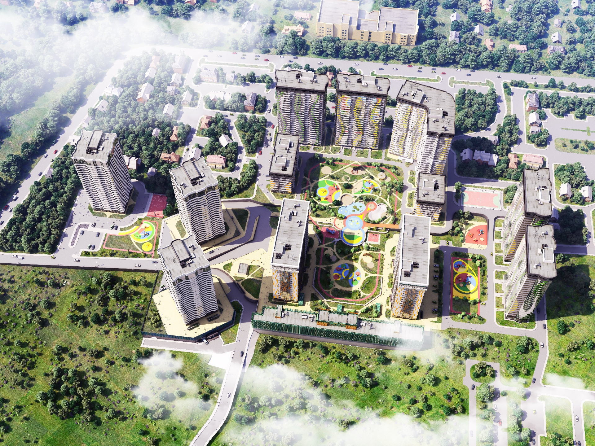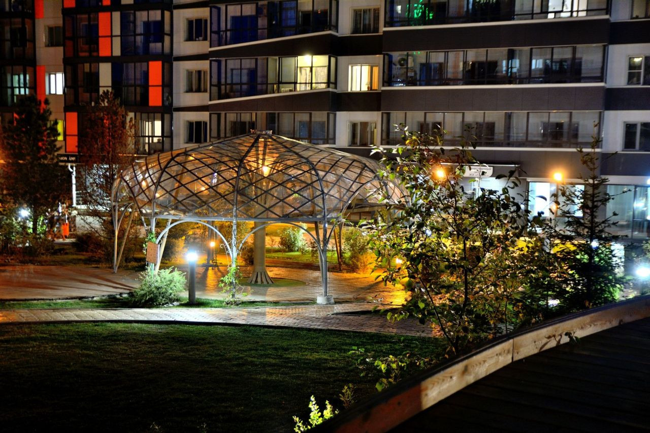 Аналогов ЖК «Оазис» в городе не найти – в основном, подобные комплексы строятся дальше от центра и не имеют такой большой зеленой территории. Уникальный сити-парк расположен на 1,5 га, здесь есть места для отдыха, занятий йогой на свежем воздухе, спортивный комплекс, беговая дорожка вокруг парка, несколько кофеен, скейт-зона, детские комплексы с горками, качелями, песочницами. Летом в центре парка работает фонтан. И окна квартиры выходят как раз на этот парк.