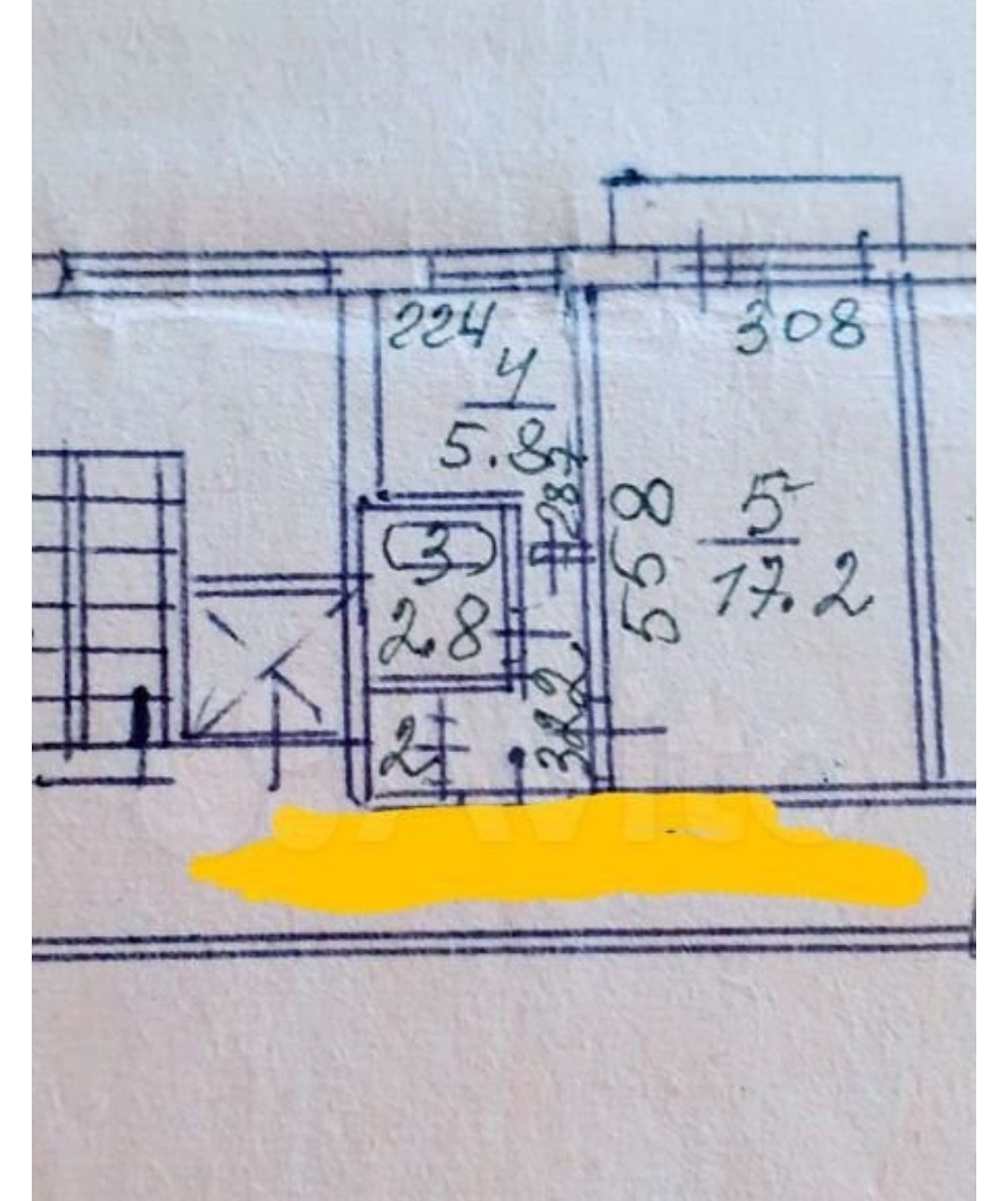 Жилая площадь 17.2 м2