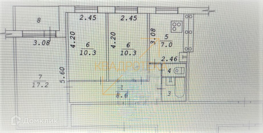 Общая площадь 58 м2