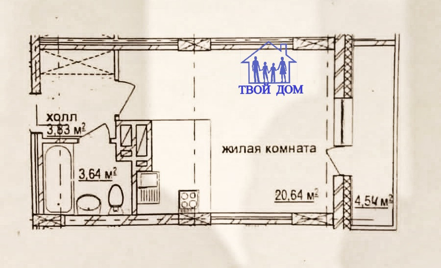 В продаже студия 28 кв.м. в кирпичном доме 2014 года постройки