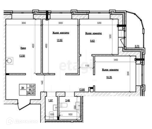 Общая площадь 66.3 м2