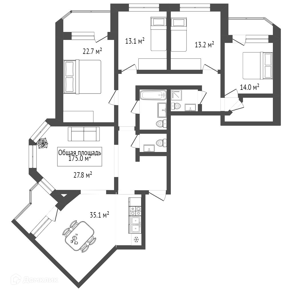 Общая площадь 175 м2