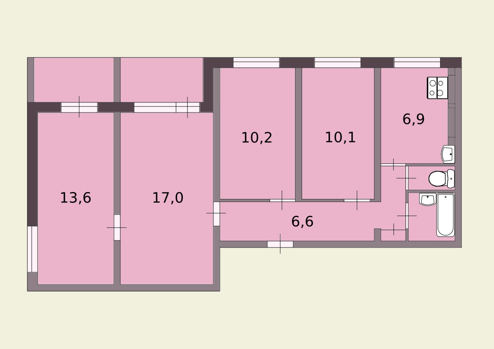 Общая площадь 74 м2