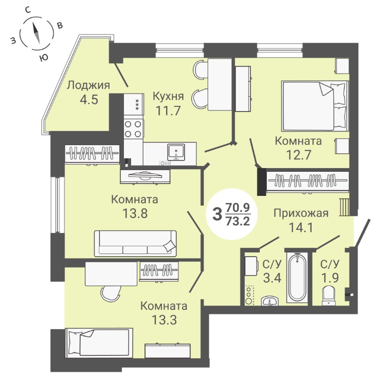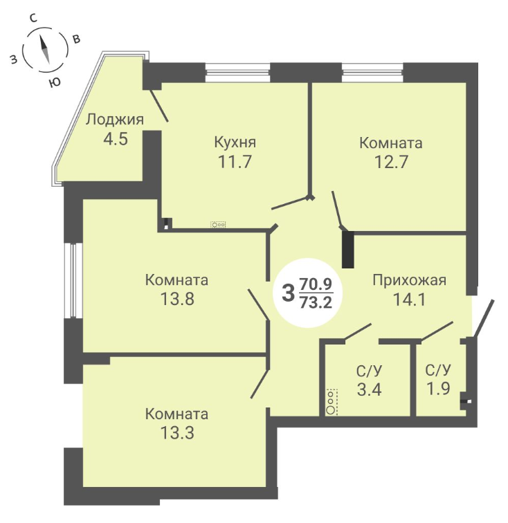 Общая площадь 73.2 м2