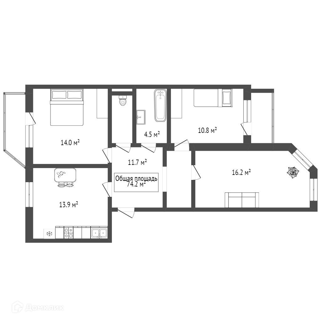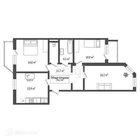 Общая площадь 74.2 м2