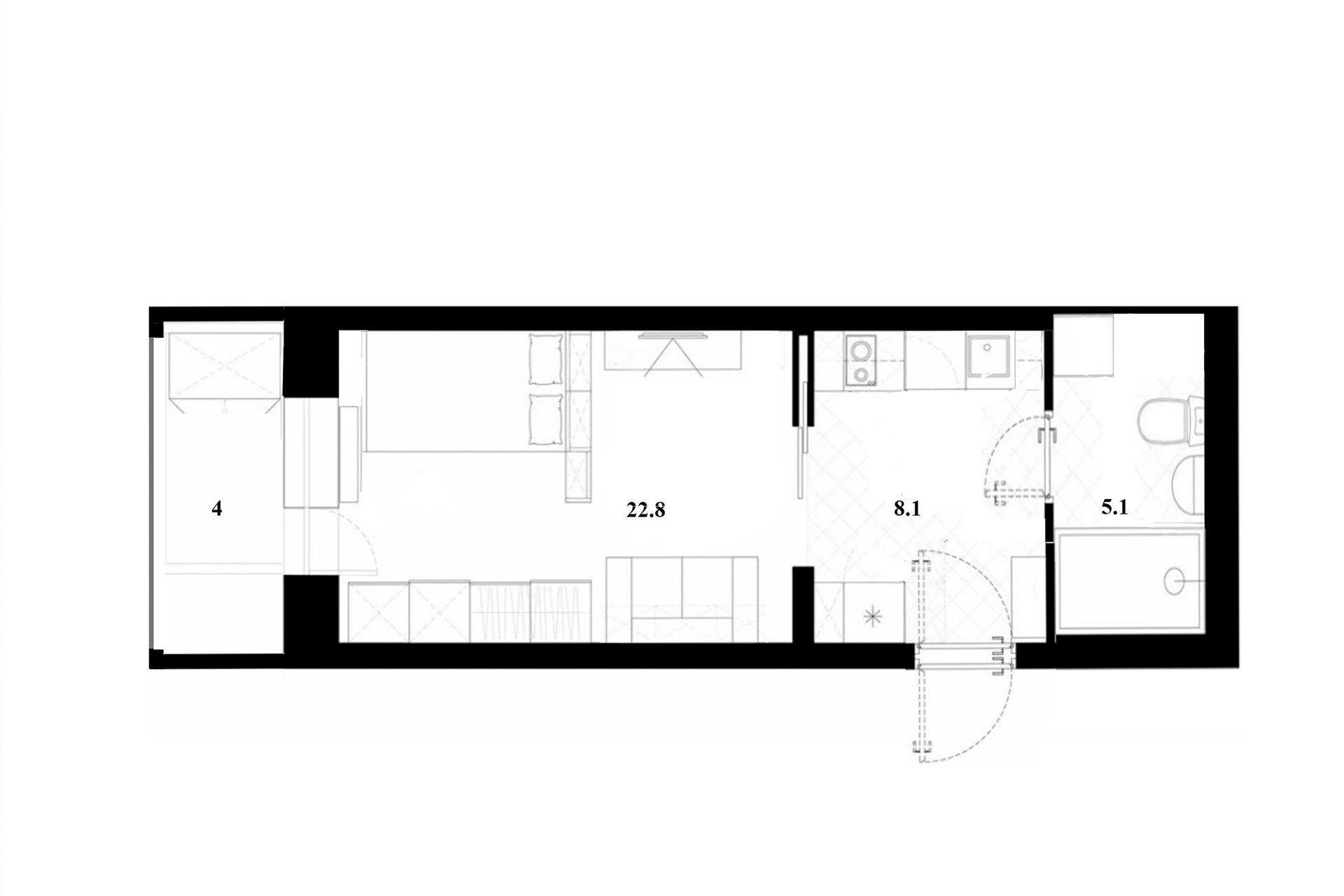 Жилая площадь 23 м2