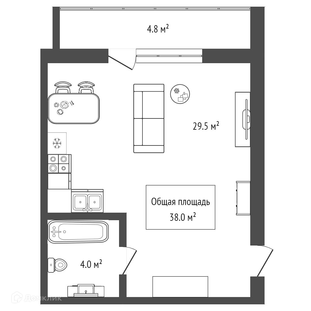 Общая площадь 38 м2