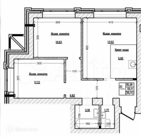 Общая площадь 56 м2
