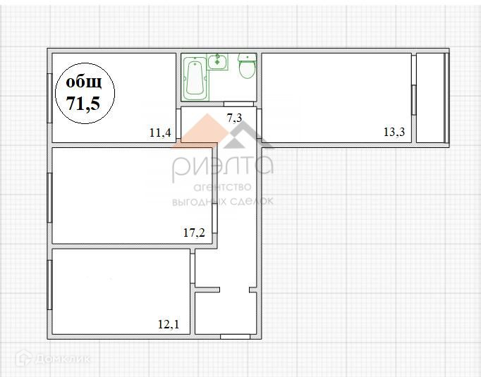 Общая площадь 71.5 м2