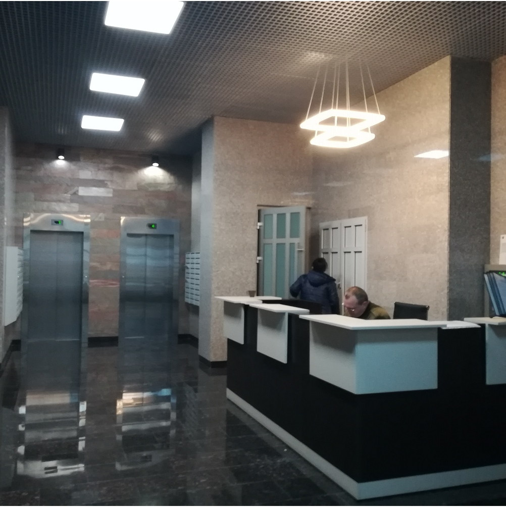В доме круглосуточная охрана. Красивый холл с зоной отдыха и диванами, где можно встречать гостей.