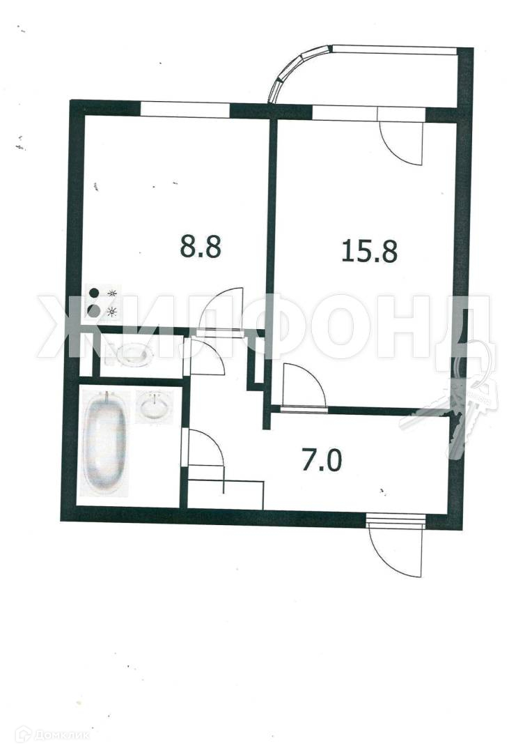 Жилая площадь 15.8 м2