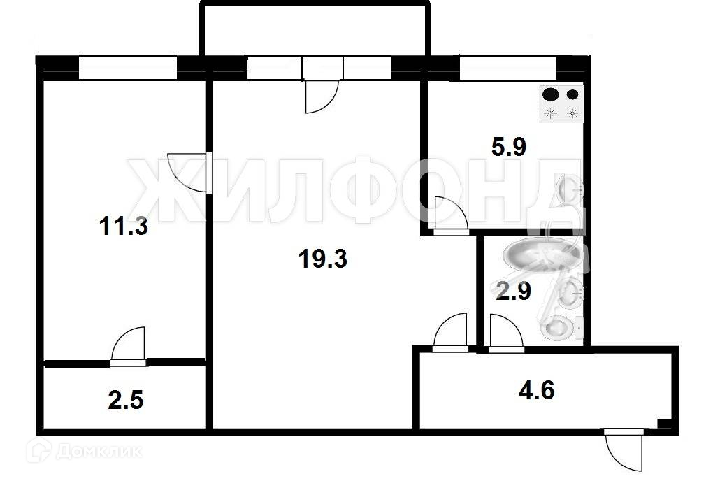 Жилая площадь 30.6 м2