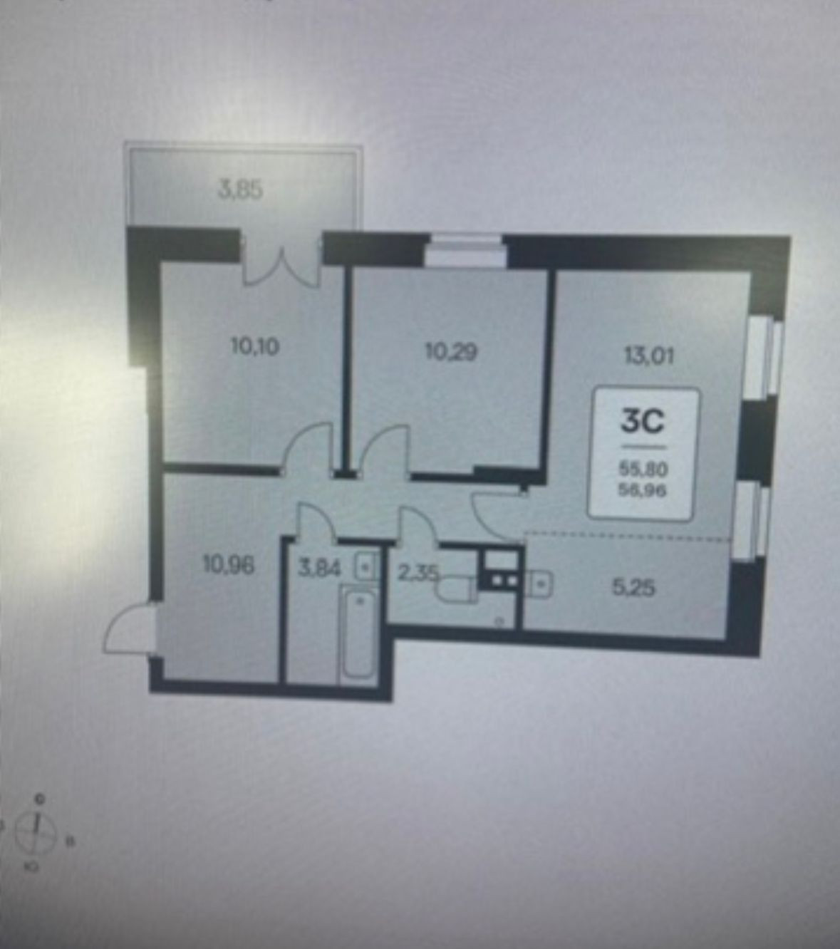 Общая площадь 55 м2