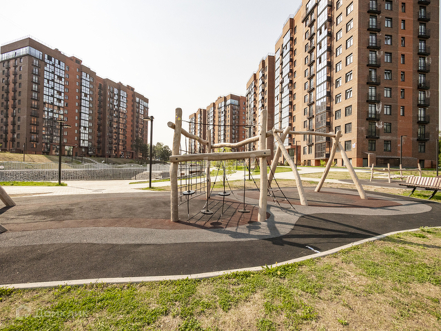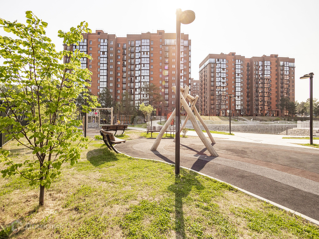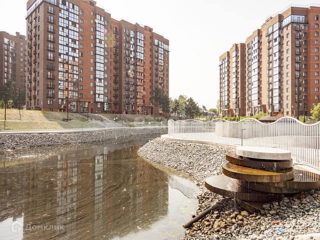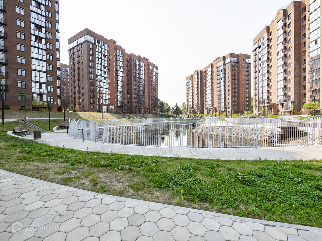 Придомовая территория облагорожена детской площадкой, прогулочными дорожками, парковой зоной, озером, которое находится в центре комплекса. Территория ЖК огорожена, находится под охраной, работает видео-наблюдение, умный домофон. Автомобили на территорию заезжают по специальному коду, стоят ограничительные шлагбаумы, что является дополнительной безопасностью для ваших детей. Парковка наземная и подземная.