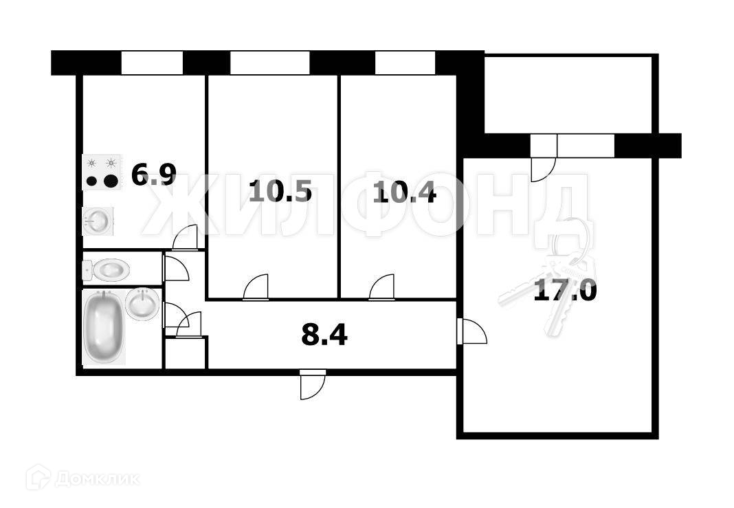 3-комнатная квартира, 57.3 м2, этаж 6 / 9, на продажу в Новосибирске, улица Крылова, 41