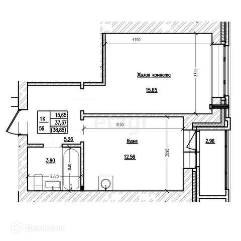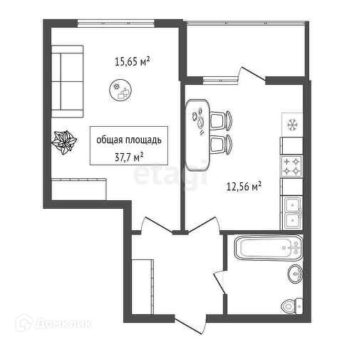 Общая площадь 37.7 м2