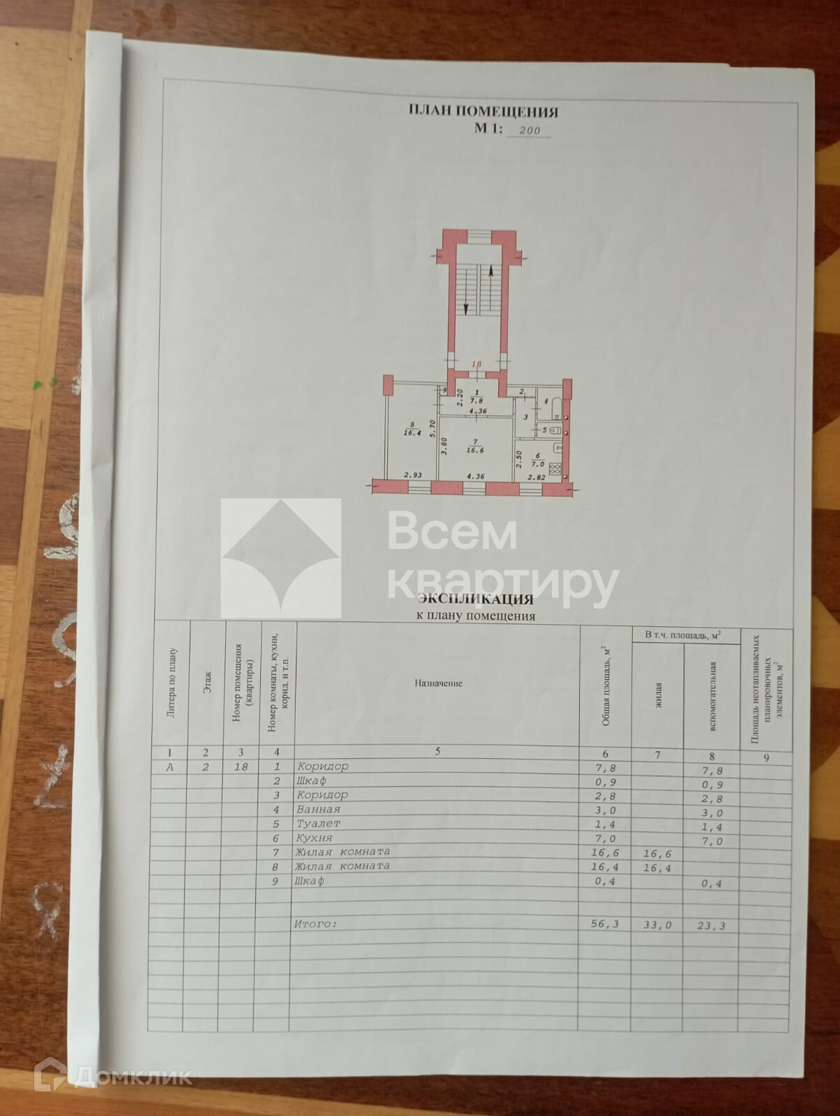 Общая площадь 56.3 м2