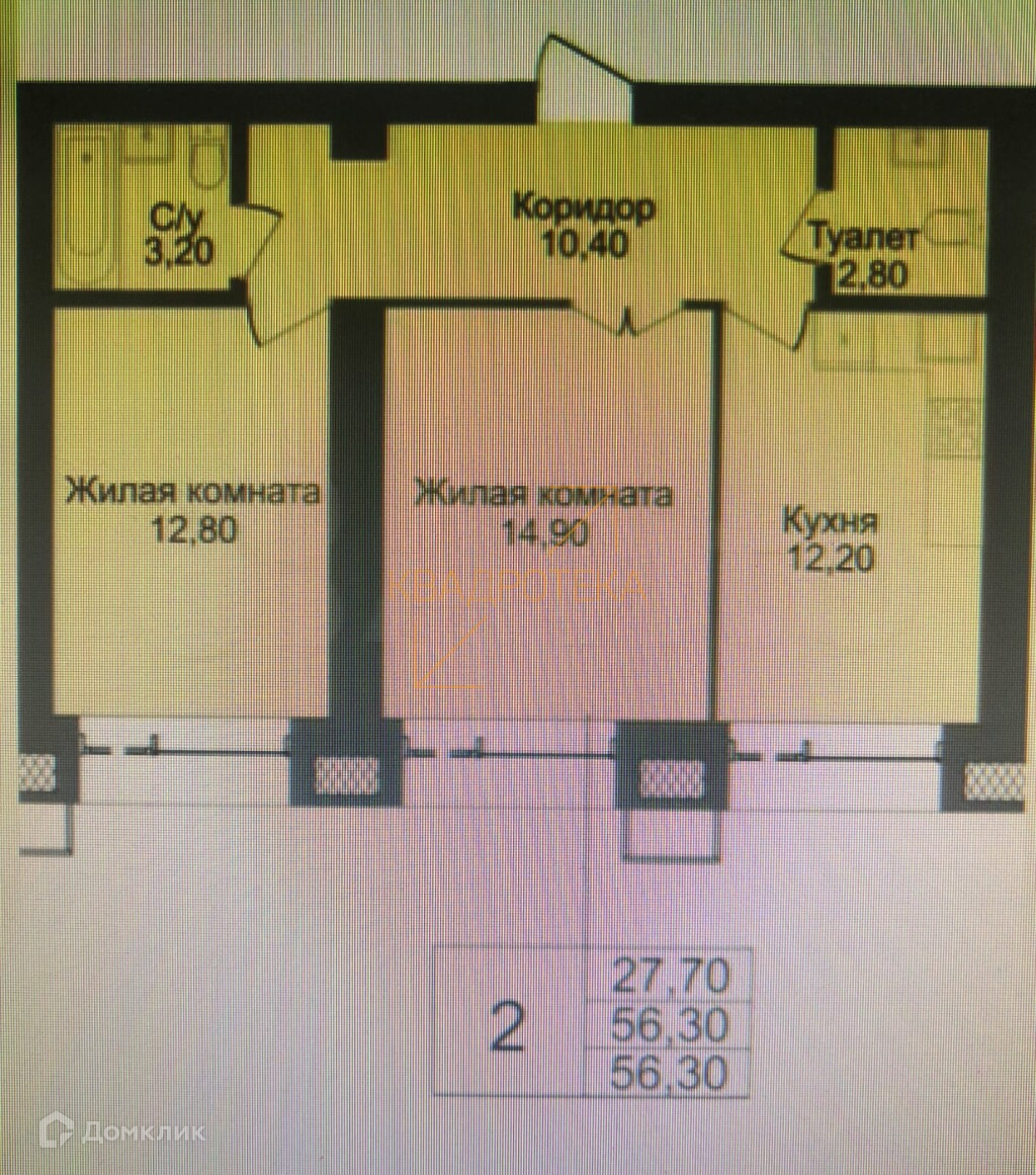 Общая площадь 56.3 м2