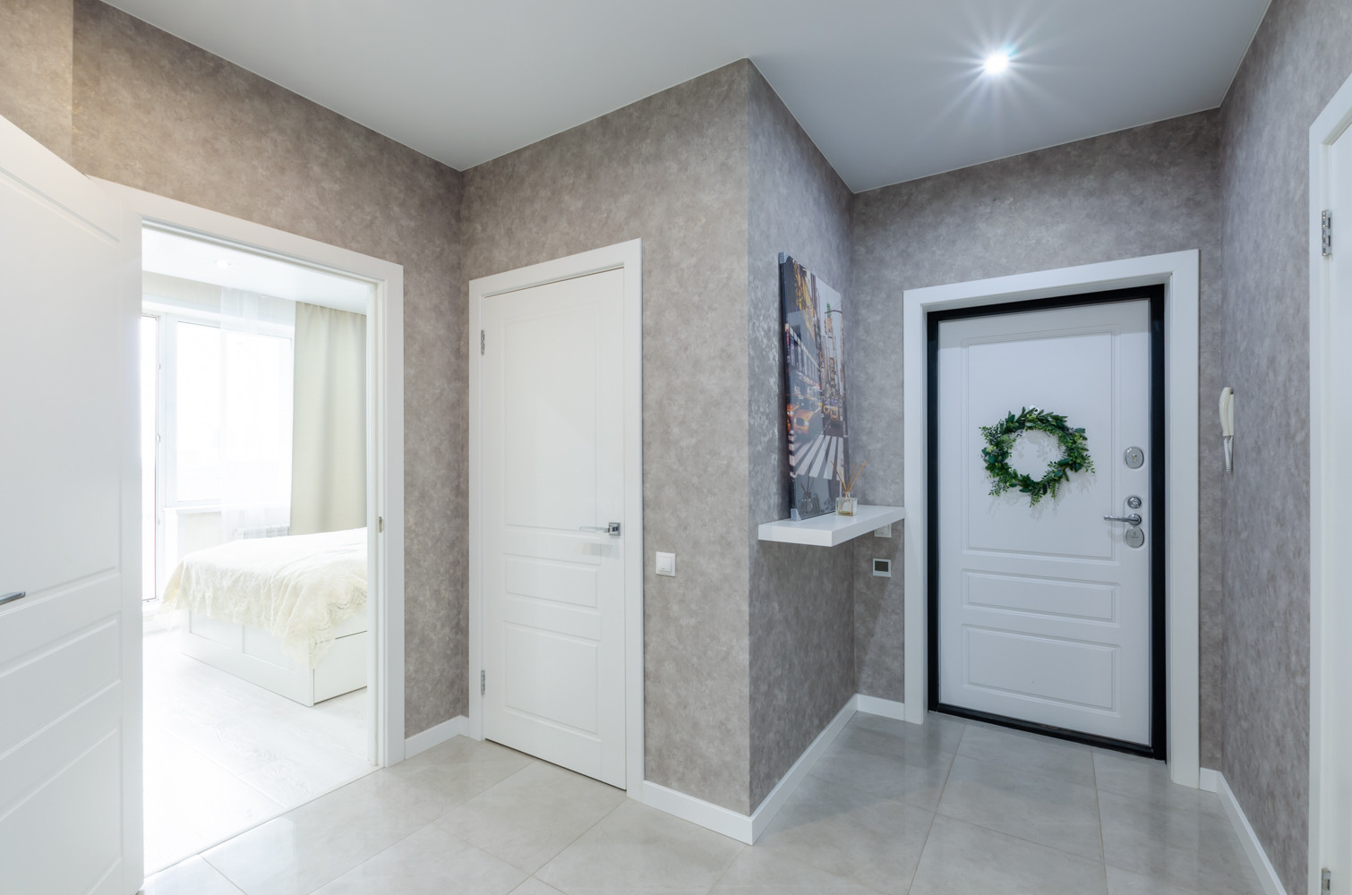 На стенах: обои.