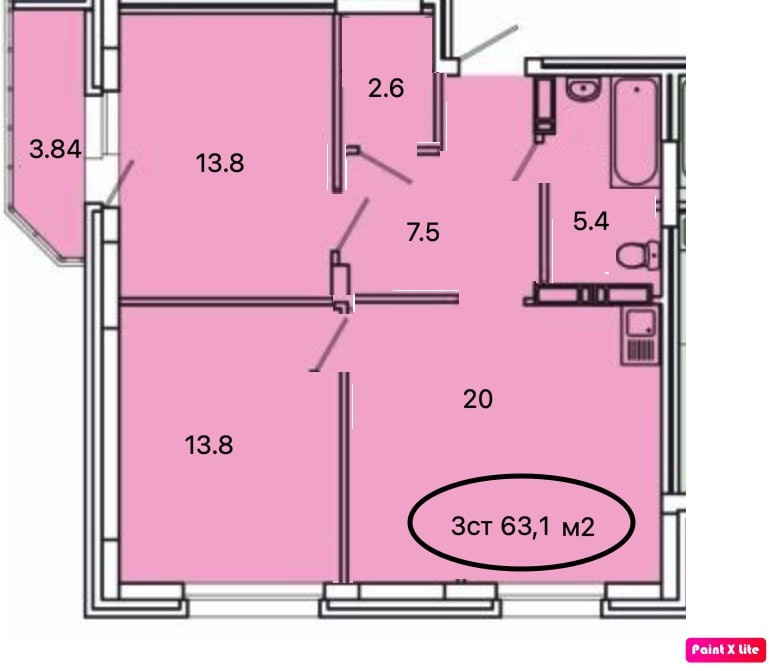 Общая площадь 63 м2